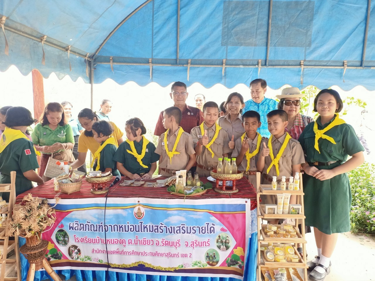 วันที่  28  พฤษภาคม  2568  นางสาวดารณี  กลิ่นหอมและคณะครู  พานักเรียนร่วมออกบูธร่วมกับหน่วยงานต่างๆในอำเภอรัตนบุรี  โดยมี  พันจ่าเอก สุวิน ห้องแซง นายอำเภอรัตนบุรีแวะเยี่ยมชม